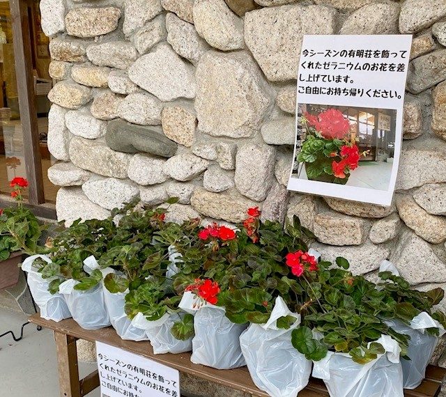 館内や窓辺を彩ってくれていたゼラニウムたちも、そろそろ冬支度の時期です。