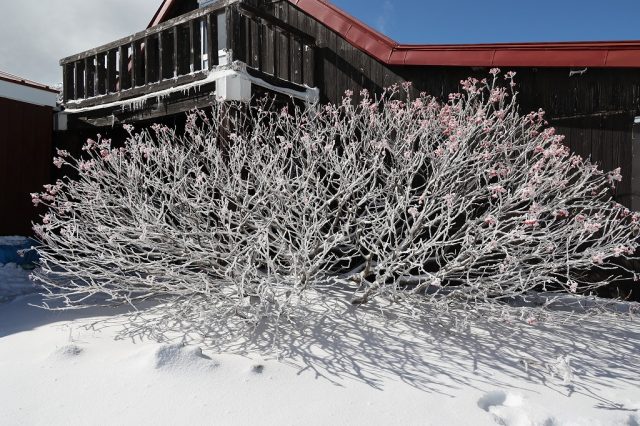 昨夕降り始めは雪でしたが、未明に一旦みぞれに変わり、それが再び雪へと転々した関係で、ナナカマドや露出した岩などは部分的に“着氷”しました。