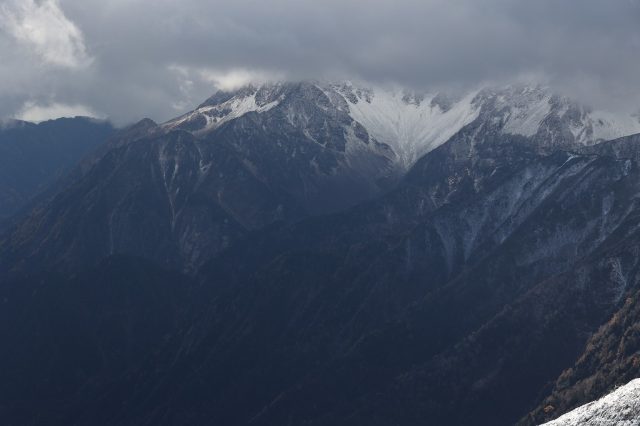 槍穂の稜線は終日見えることはありませんでした。見える範囲の山肌を見る限り、こちらはほぼ真冬並みの様相を呈しています。