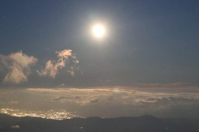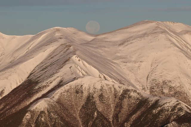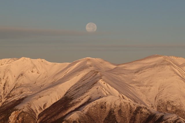 昨夜は雲で月が見えなかったのですが、朝起きると月明かりが煌々と白くなった山々を照らし、暗闇の中に浮かび上がらせていました。満月の夜の明るさは思った以上に明るいものです。