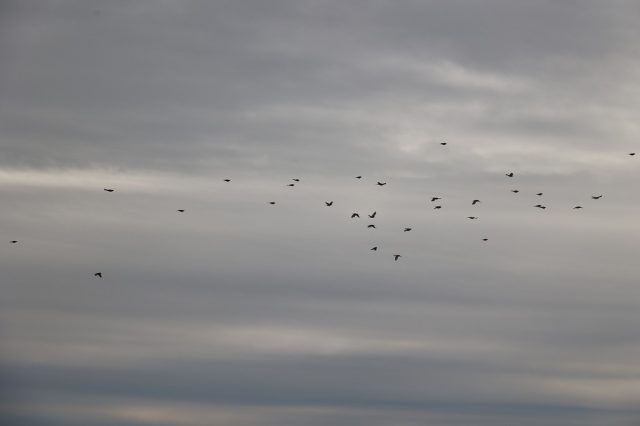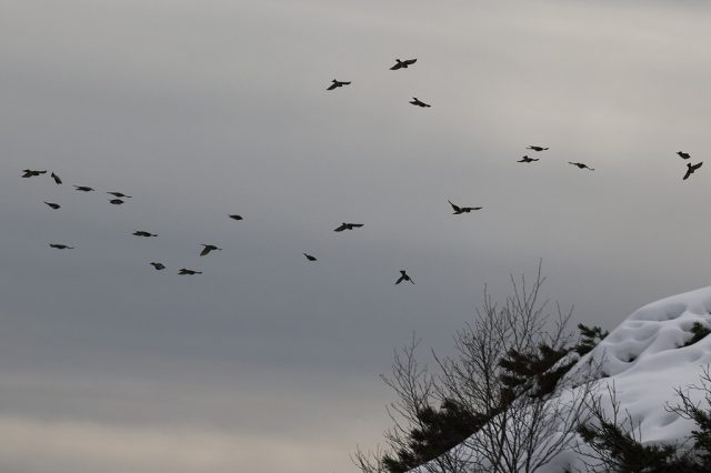 そんな作業をしている時、20羽以上の鳥の群れが飛んで行きました。一体、なんという鳥たちなのでしょうか。雪が降ってからはいつも可愛らしい姿を見せてくれたイワヒバリたちはすっかり姿を見せてくれなくなりました。
