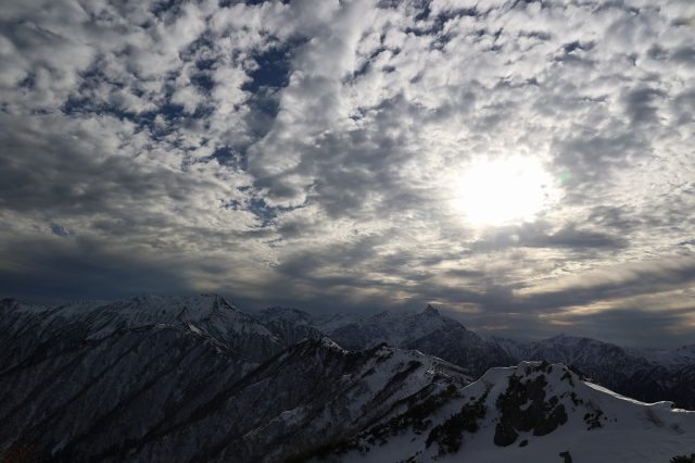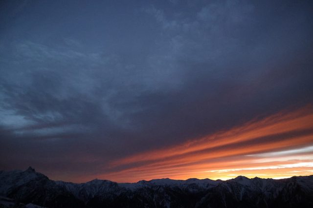 北部の山々にだけは太陽の光が届いているようで真っ白になった鹿島槍が美しく照らし出されていました。