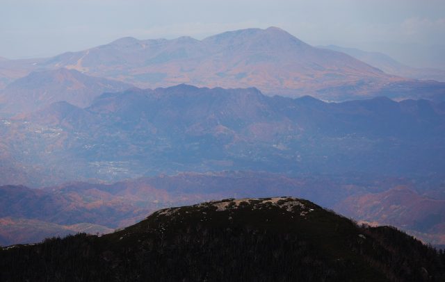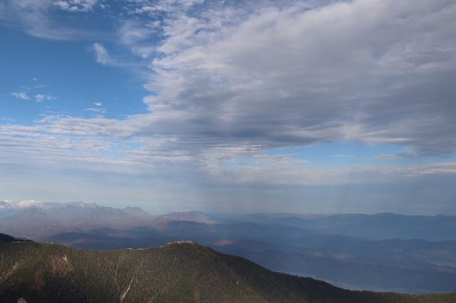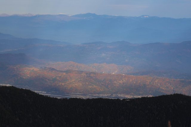 この光があたる場所は刻々と変わっていき、麓の池田町の山々の紅葉を照らし出していました。照らし出される場所が変わっていくので、しばらく景色に見入ってしまいました。どんよりとした空の一日でしたが素敵な発見もありました。