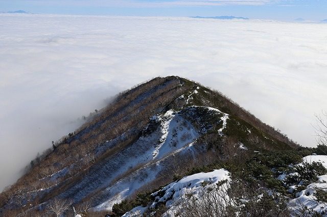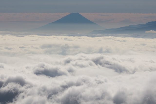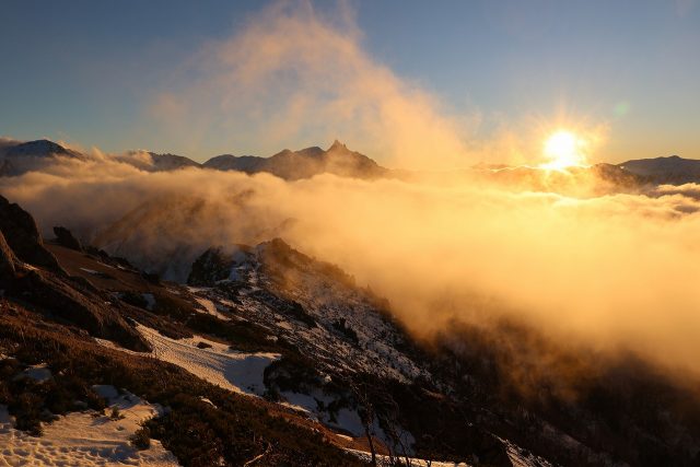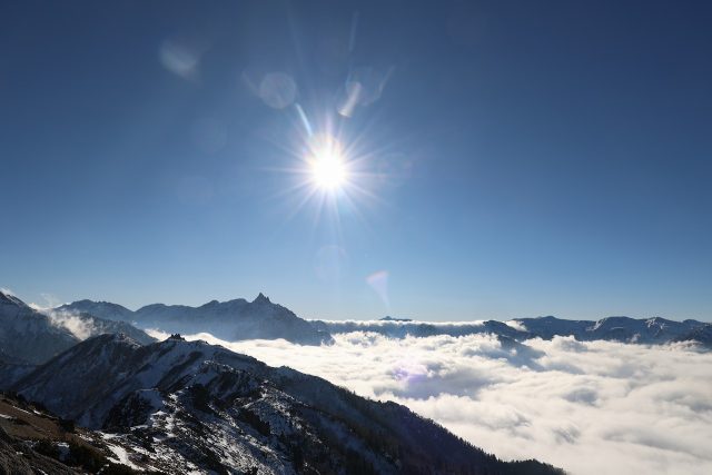 安曇野側にはずっと雲海が広がり続きました。麓のライブカメラを見るとどんよりとした灰色の空が広がっていて、きっと山の上のこの晴天は想像がつかなかったことと思います。