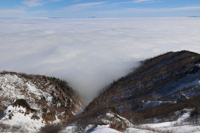 午後になってくると高瀬渓谷側にも雲海が入り始めました。これでここはまさに雲の上の世界となりました。