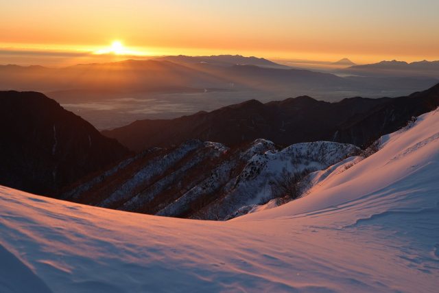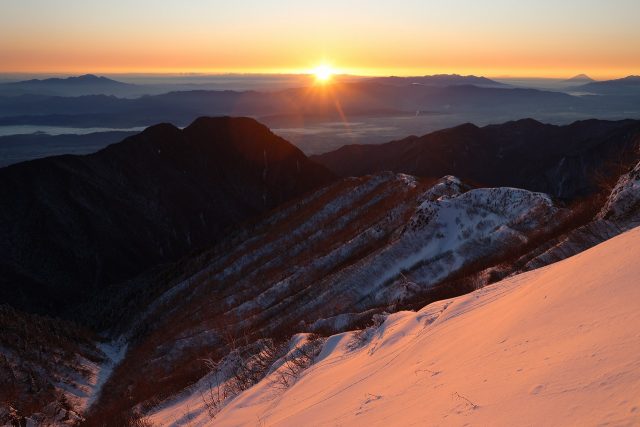 今回の寒気のピークは先日だったようで、今朝の玄関先の温度計の気温は-12℃と若干緩みました。とはいっても寒い朝でした。しかし、きれいに晴れて夜明け前から富士山もきれいに見えていました。ここから見る富士山は決して大きいわけではありませんが、日本の最高峰、やはり素敵ですね。今日は少し雲があって、少し遅れての御来光となりましたが、寒さに震えて待った甲斐があり、とてもきれいでした。