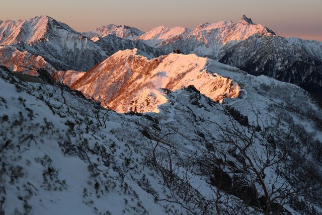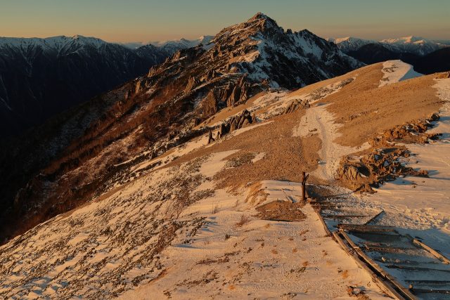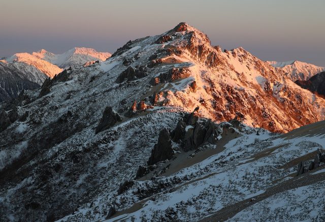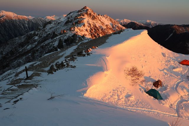 日が沈む20分くらい前の光のあたり具合は個人的になかなか好きで、燕岳は美しい色に染まりました。