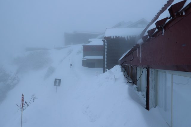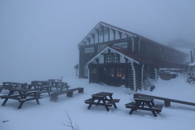 終日、雪降りとなりましたが風が強かったこともあり、小屋周りの積雪は思った程は増えていませんがまだまだ降り続いているので、明日の朝になれば増えているかもしれません。今日の日中は-5℃位とそれほど厳しい寒さではありませんでしたが、風が強かったので気温以上に厳しい天候になりました。