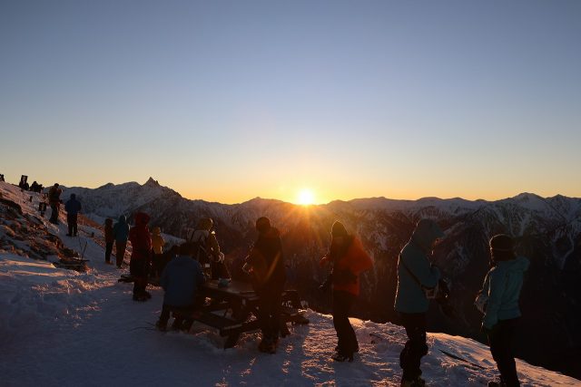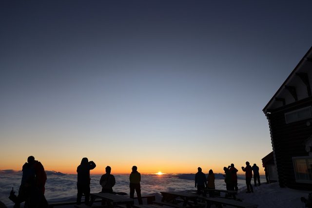 今シーズンの営業も残すところ、今日と明日だけとなりました。それに天気が答えてくれたのか素晴らしい天気でこの連休は始まりました。先日の降雪は今日をより美しくするための雪だったような気がしました。日の出前、ビーナスベルトがとてもきれいでした。