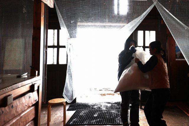 お天気には関係なく、この冬の時期の大事な作業のひとつである雪を融かす融かしての水作り。お客様が増える前に進めます。きれいな雪を大きなビニール袋に取ってきて小屋の中へ運び融かします。ただ、今日のように降ってすぐの雪はふかふかですぐに融けてしまうので作っても作ってもなかなか増えていきませんので、一日に何度もこの作業を繰り返します。