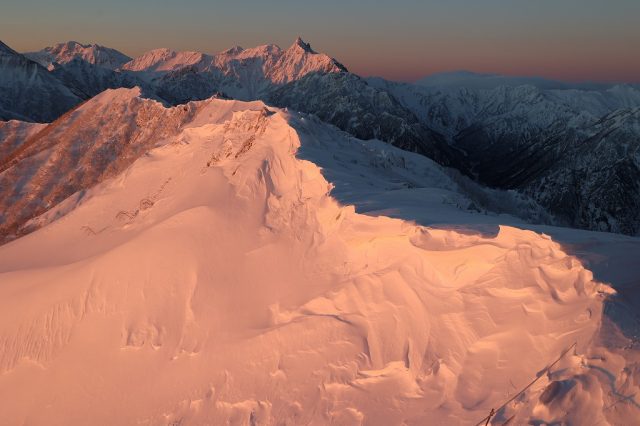 この降雪直後というのは山が最も美しくなる時です。今朝の朝焼けは本当にきれいでした。冷え込みましたがその寒さを忘れ、カメラ片手にあちこち駆け回る朝となりました。