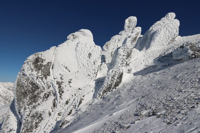 今日は日中でも-10℃くらいで気温も低く、日中になっても岩氷は落ちることなく付いていました。ただ、風は冬としては弱く、気温程寒くは感じませんでした。