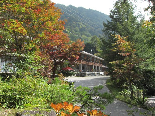 玄関前から見る山肌もずいぶん黄色味を帯びてきました。いよいよ紅葉シーズンの始まりです!