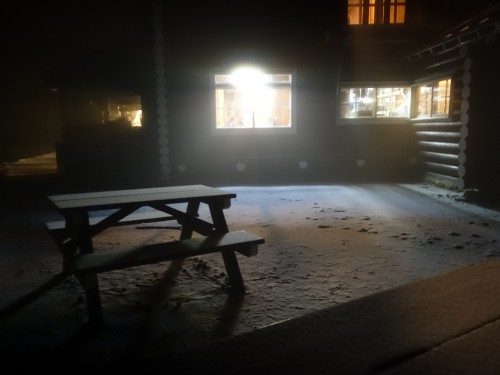 ご宿泊のお客様がオーナーの山の話を聴きながら、ストーブで暖まっている頃、降り始めた雪が薄らと積もっていました。