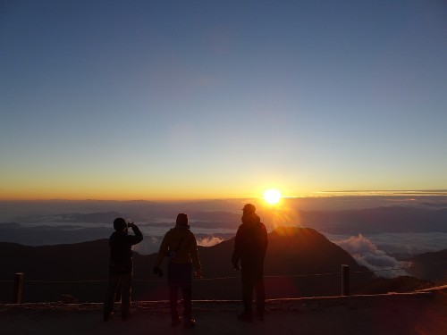 雲があったせいか日の出は5時50分近かったでしょうか、皆さんフードや帽子をしっかりかぶり、日の出を待っておられました。
