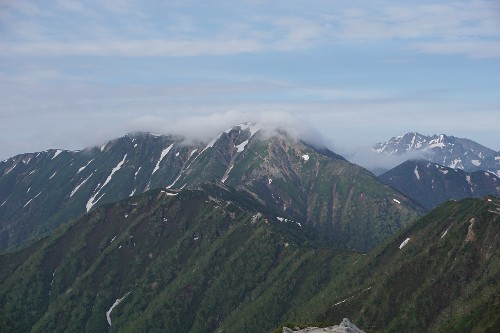 槍ヶ岳も燕岳もくっきりと見え、おもしろい雲が空にかかっていました。
