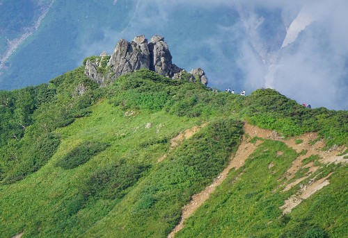 晴れた朝を迎えましたが、まだまだ大気は不安定な状態で、鹿島槍の北峰と南峰のからは滝雲が流れてなかなか見られない光景をめにすることが出来ました。