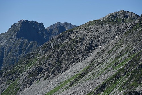 雲一つない青空に聳える槍ヶ岳。こんな天気の日に山頂に立ちたいですね。ちなみに、この時期の山小屋スタッフは山を歩くことはなかなかできず、きれいな山並みをただ眺めるだけです。