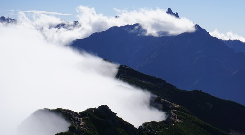山の上はきれいな青空の広がる晴れとなりましたが、どうやら東側はガスや雲に包まれ続けていたようです。こんな時、稜線まで上がってきて広がる大展望の感動はいつも以上に大きなものとなることでしょう。