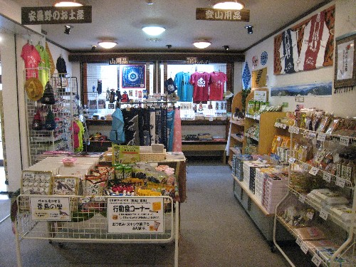 登山者向けのグッズや行動食以外にも、お土産品が数多くそろっています。