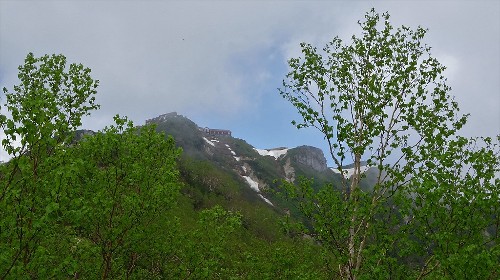 登山道上の雪もほとんどなくなり、三角点の上にわずかに残るだけとなりました。登山道の雪切り作業もこれが最後となりそうです。あんなにたくさんあった雪もひと月半あまりですっかりとなくなってしまい、なんだか不思議な感じがします。