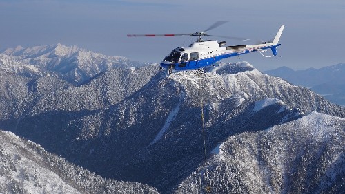 今朝は前回の残りのヘリコプターによる物資輸送を行いました。雪山の上を飛ぶヘリコプターもかっこいいですね。ただ、ヘリコプターからのダウンウォッシュが舞い上げる雪煙はなかなかなもので、その中にいると目を開けていられないほどです。