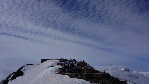 朝になると雨は上がっていて日の出は見られなかったものの雲の切れ間からは青空が見えていました。雨上がりという事もあってこの空の青がとても美しく思えました。昨日の雨で雪解けが随分と進み景色がだいぶ変わって着せTが進んだような感じがしました。