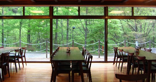 ▼ホール(食堂)から見る新緑