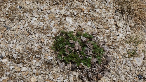 例年より雪解けは早く進んでいて、もしかしてそろそろかなと思い探しているとありました、ミヤマキンバイの新芽。花はまだですが季節は着実に夏へと向かっています。