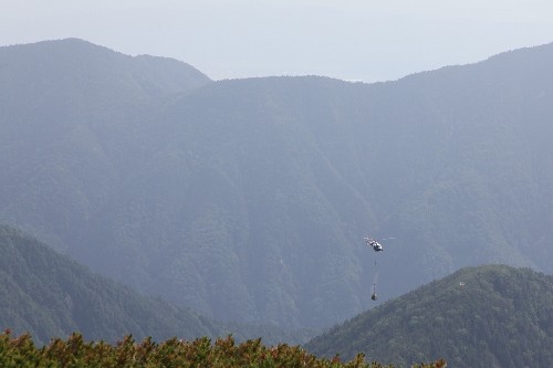 一昨日に続き、今日も早朝からヘリコプターによる空輸作業がありました。