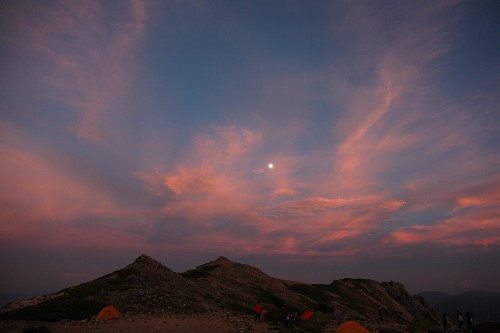 私の拙い撮影技術ではなかなかその壮大さが伝わりにくいのですが、正直、ポツンと登山道上でもテント場の隅でもいい、佇んでこの空を仰ぎ見ると、自然の懐に抱かれている感が多分にします。