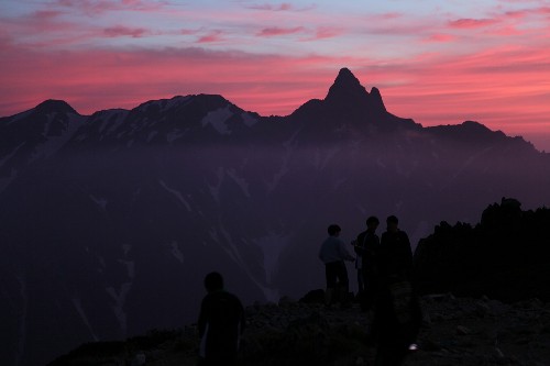 山頂から戻り、小屋に着いたのと同時に辺り一帯は素晴らしい紅色に染まりだしたのです。