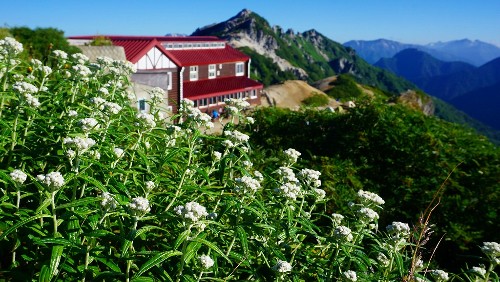 今日も昨日同様、8時を過ぎると東からガスが湧き出してきて、日中は小屋周辺は濃いガスに包まれてしまいました。しかし、4時頃よりガスが取れ出し、再び夏空が広がりました。あちこちにはもくもくとした積乱雲が湧きたっていました。そして、20時過ぎ雷はなりませんでしたが、一時強い雨が降りました。