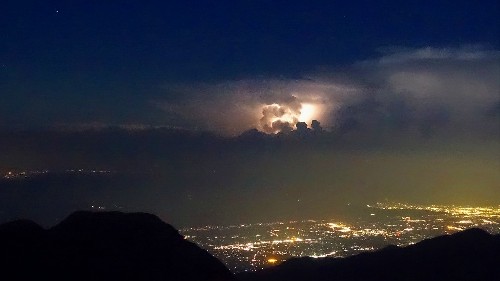 太陽がが沈むと、暗闇の中、東の空にある雷雲が稲光を発しているのが見ました。夜の稲光はちょっと不気味ですが、美しくも感じます。