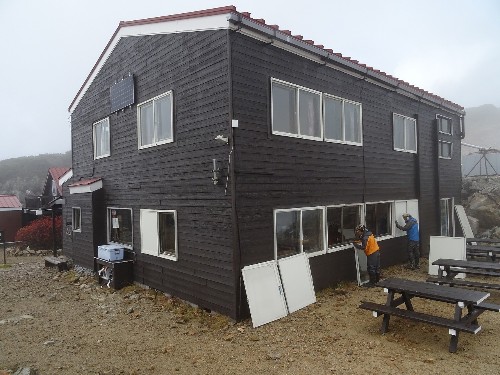 9月頭に到来した台風21号と匹敵するぐらいの暴風となる可能性があるため、今日の午前中、本来小屋閉め時に入れる雨戸を、急遽入れることにしました。