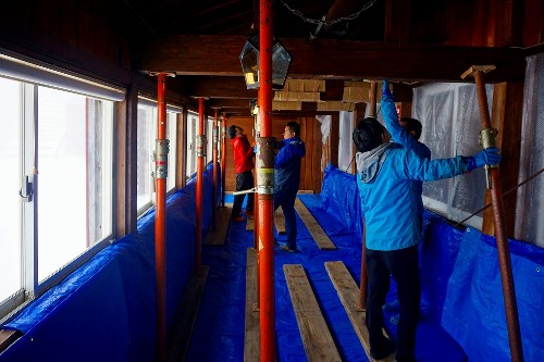 今回の降雪は合戦小屋の下辺りまでのようでした。合戦小屋は週末のみの営業となっていおりますが冬期用のトイレと休憩場所は利用可能です。今回の降雪はそれほど多いものではありませんでしたが、合戦小屋より上はほとんど雪の上を歩くことになります。今日も数名の方が上下山されたので明日以降の気温をみているとツルツルになることが考えられます。心配な方は軽アイゼンがあるといいと思われます。靴も夏用よりも冬用のほうが適しているといえます。