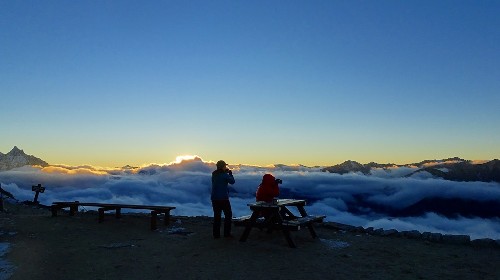 さすがに気温が低いので朝日を見るのも夕日を見るのも皆さん完全防備です、上下ダウンの方も少なくありません。