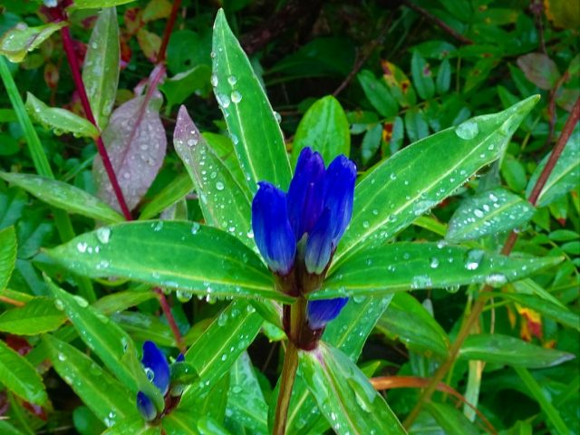 そんな中、合戦小屋までの間にはあちこちにオヤマリンドウが咲いていて、降りしきる雨の中、心を慰めてくれました。花にはそんな力があるのですね。