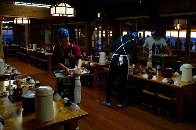 その頃、我々スタッフはというと皆様の朝食の準備に忙しい時間となります。しかし、窓越しにご来光を見ることが出来て、本当にいいところではたらいているんだなぁと感じる瞬間でもあります。