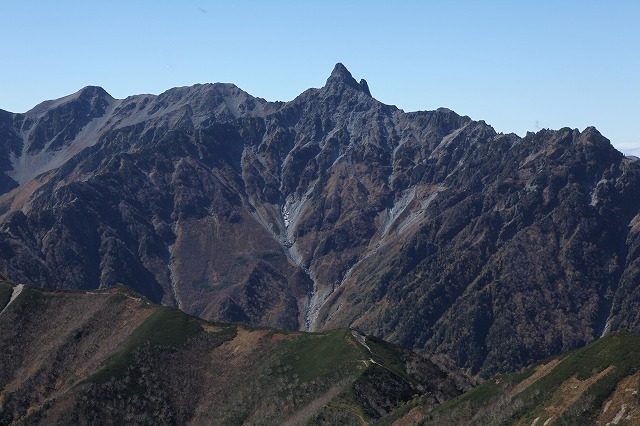 槍ケ岳から南岳上空にかけて、うっすらとレンズ状の雲が靡いているのが、とても印象的でした。