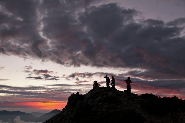 山頂に着いた頃は確かに真っ白でしたが、みるみる霧が晴れ、どこを見渡しても、雲の演出効果が素晴らしい峰々を目にすることができました。