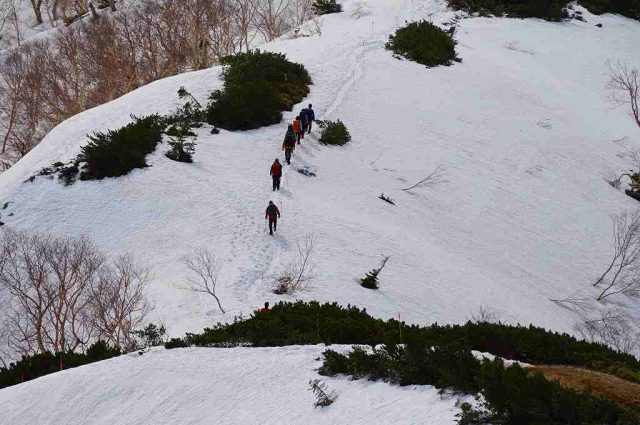連休の初日は午後から崩れる予報だったので、連休初日の割には静かな一日でした。そして、登って来られた方々の多くは雪の少なさに驚かれていたようでした。