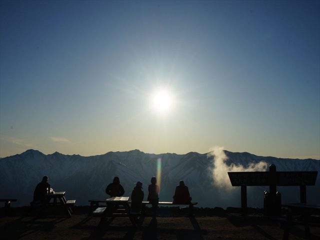 18時過ぎ、夕食を終えられ、外のベンチに座り、沈みゆく太陽を眺めている方がいらっしゃいました。ゆったりとした時間が流れ、きっと最高の時を過ごされていたのではないでしょうか。山小屋に泊まってこそ、見られる光景です。