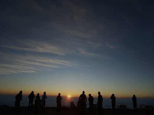 美しい朝焼けの後は美しいご来光となりました。山の上もすっかり夏となりましたが、朝晩は10℃近くまで気温が下がるので、夏とはいっても薄手のフリースやダウンなどの防寒着はお持ちになられるといいでしょう。