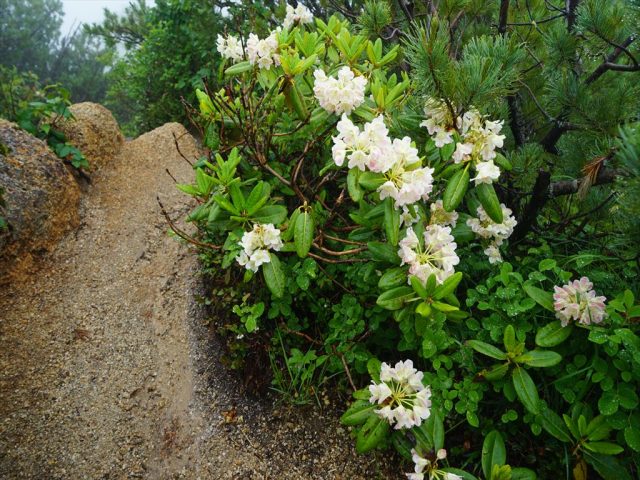 燕山荘直下は先日より夏ルートとなりましたが、今日なんとなく冬ルートを通ってみたら、たくさんのシャクナゲが咲いていて、うれしい驚きでした。これまでに一度にこんなにたくさんのシャクナゲが咲いているのを見たことがありませんでした。また、雨に濡れ、美しさがより一層際立っていました。冬ルートはロープが貼ってあって入れないようになっていますが、通行禁止というわけではありません。このたくさんのシャクナゲが見れるのは数日しかないと思われます。よろしかったらどうぞご覧ください。きれいですよ。