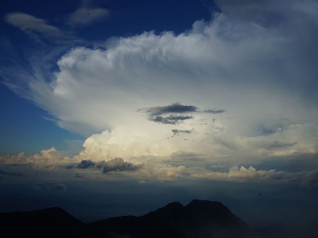 東の空には巨大な迫力のあるきのこのような雲が現れていました。今日の午後はモクモクと沸き上がる雲が様々な面白い光景を作り出してくれました。