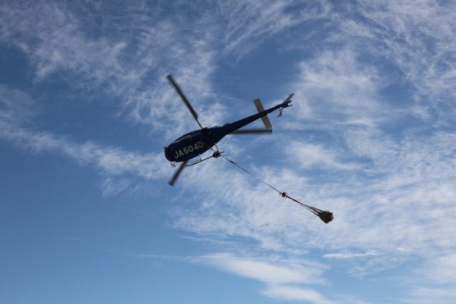 先週に引き続き、今日もヘリコプターによる空輸作業が行われました。