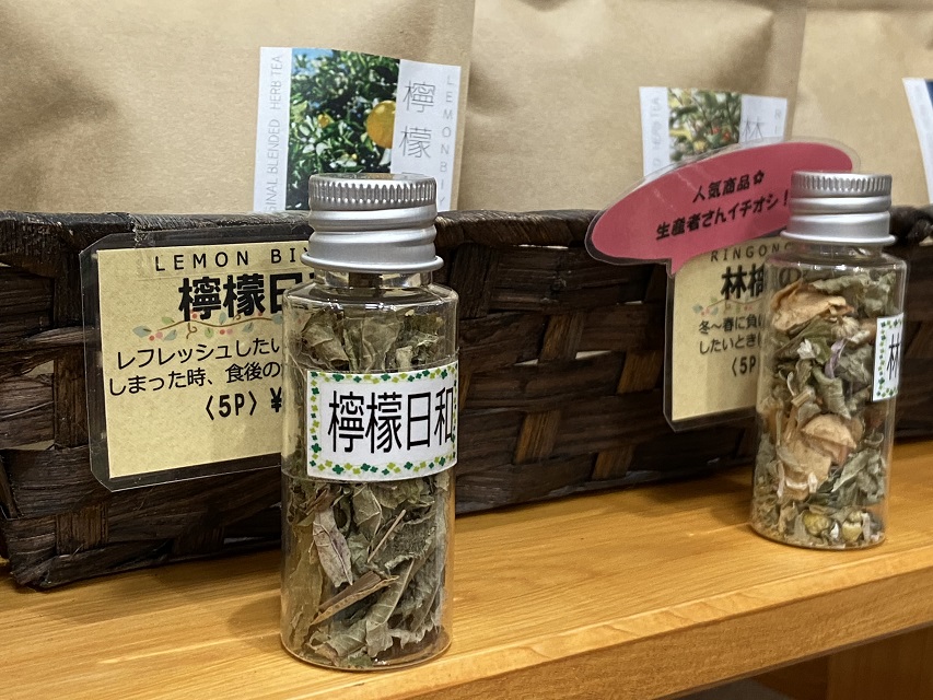 有明荘の売店では2年前から安曇野市の隣にある池田町の「ナチュラルマルシェ ソヨソヨ」さんのハーブティーを販売しています。